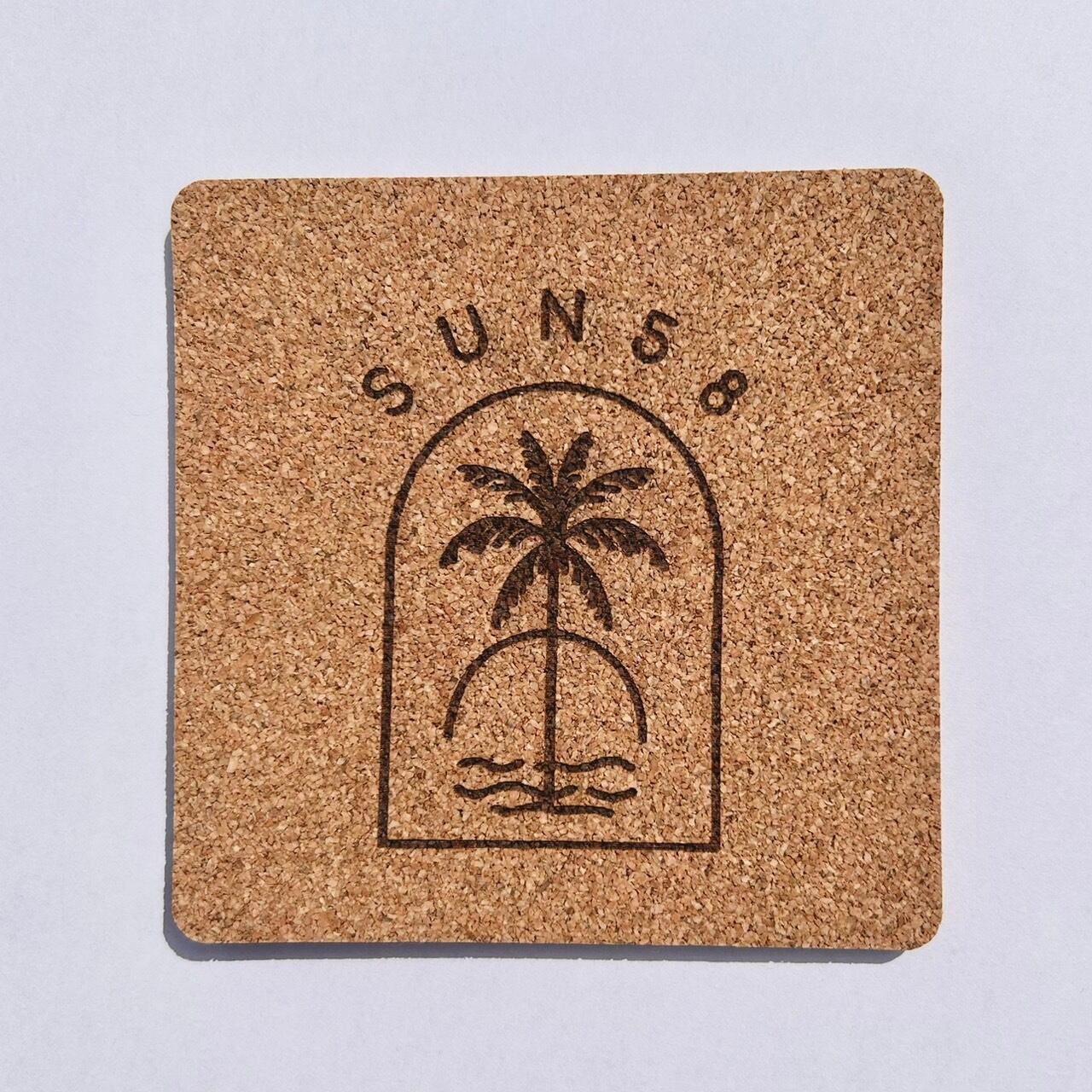 SUN58のロゴをレーザー加工したコースターになってますので水滴などでロゴが消えていってしまう心配もなし! ギフトにもオススメです♪